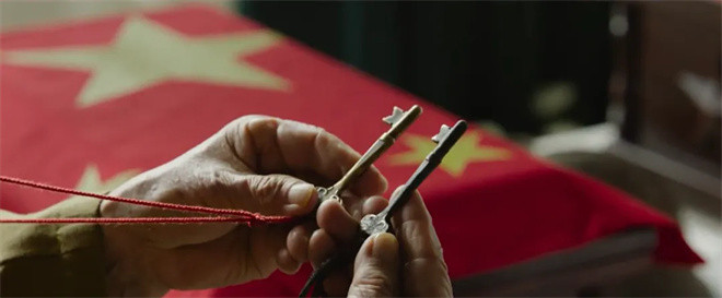 其中最具代表性的,是那把串联起李家三口亲情的钥匙。这把钥匙,父亲李默尹出征时随身携带,女儿李晓辗转各地也随身携带,父亲在牺牲前,将钥匙放进水壶顺水漂走,是想把钥匙留给儿子李想,他能“回家”是心中的念想。